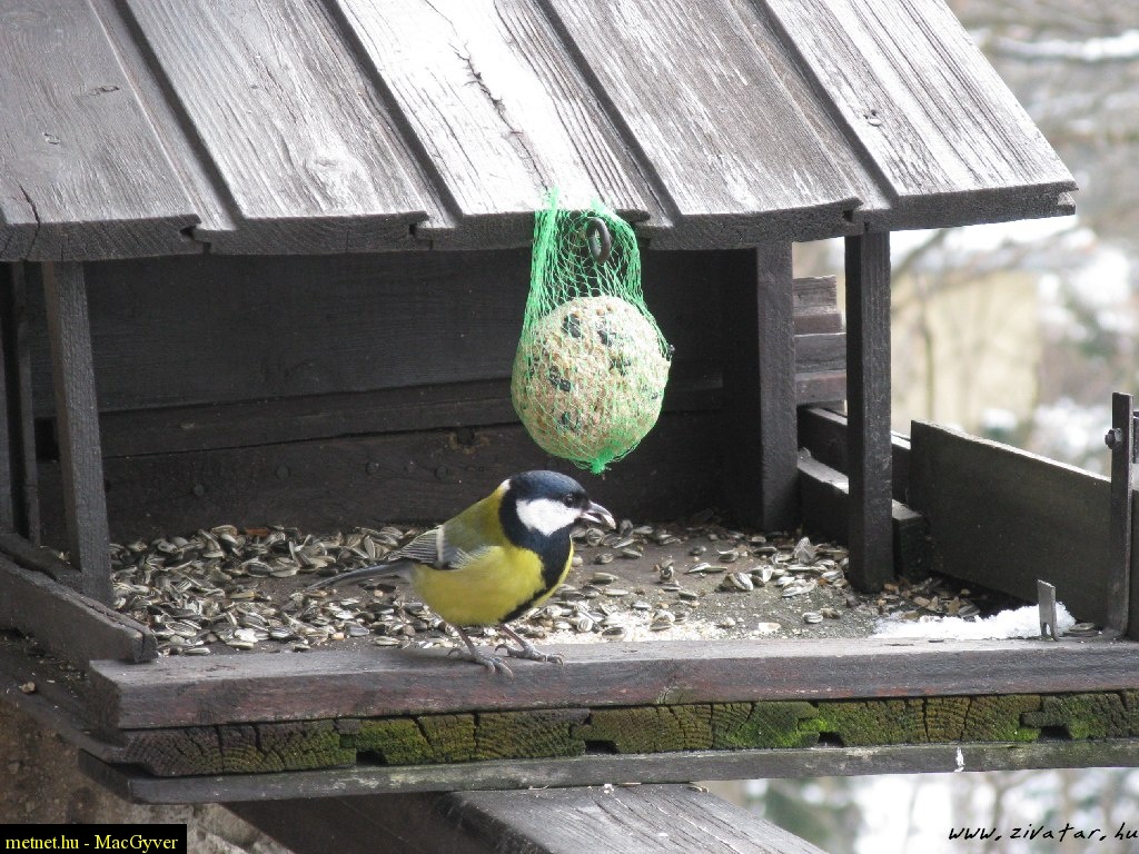 Leírás: Széncinkék a madáretetõben