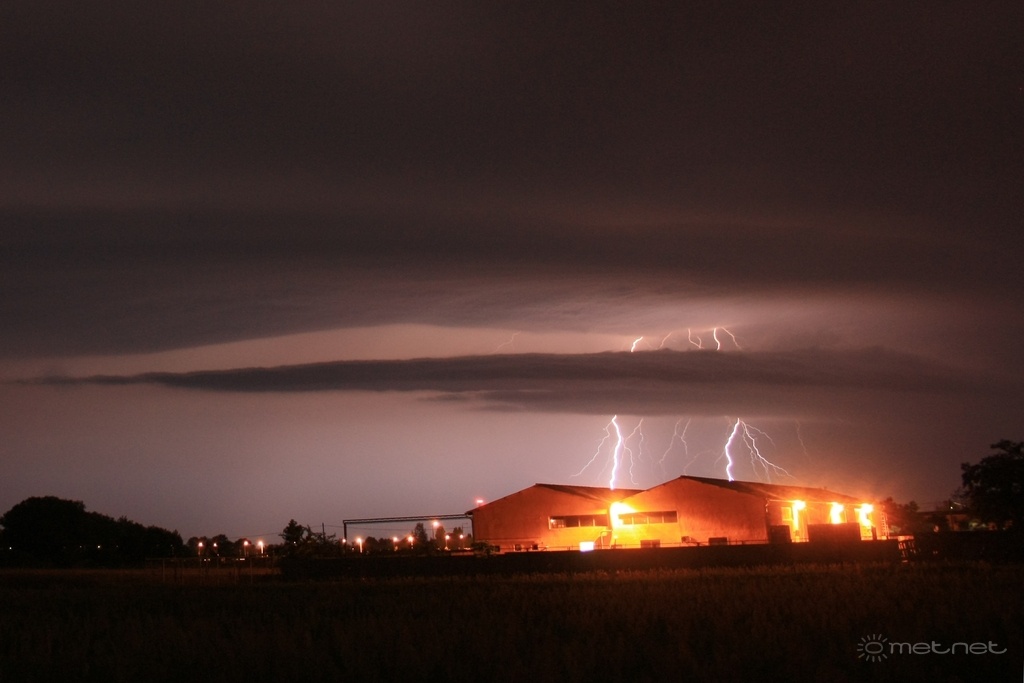 | Leírás: A tiszántúli zivatarrendszer érkezése Debrecen környékére látványos peremfelhõvel. | |