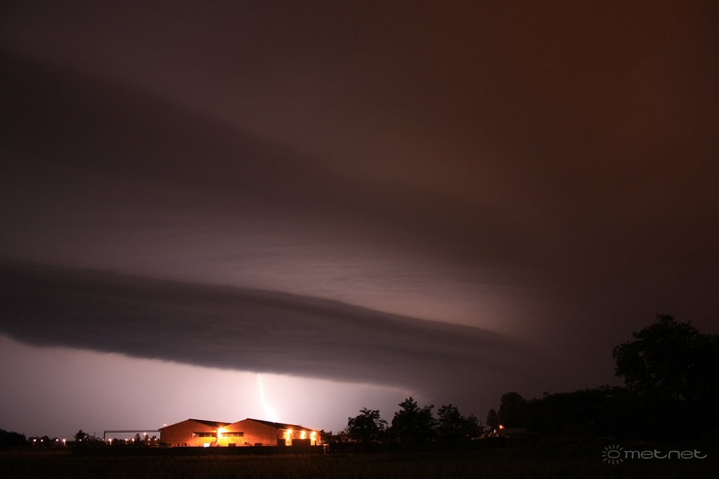 | Leírás: A tiszántúli zivatarrendszer érkezése Debrecen környékére látványos peremfelhõvel. | |