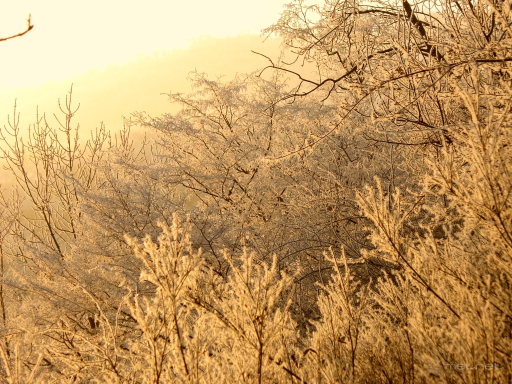 | Leírás: A Diósgyõr feletti zúzmarás erdõ reggeli napfényben | |