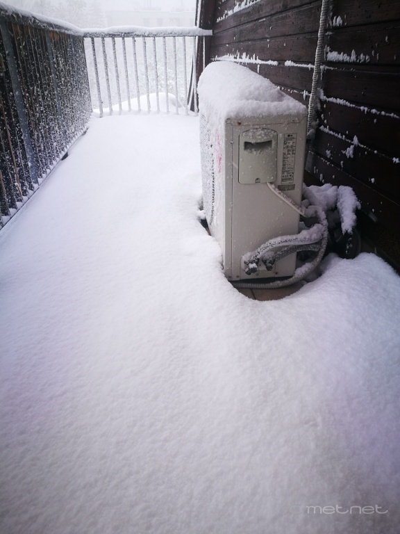 | Leírás: Normafa, Eötvös út. Hóvastagság 15 cm körül, a meleg miatt nem nagyon gyarapszik, bár reggel óta újra folyamatosan havazik | |