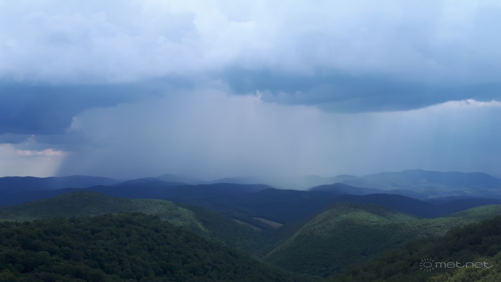 Leírás: Látványos zivatarfelhő és csapadéksávja a Déli Bükk felé a Vöröskő-bérc oldaláról. Abból a cellából hullott kedden Egerben az 57 eső.
