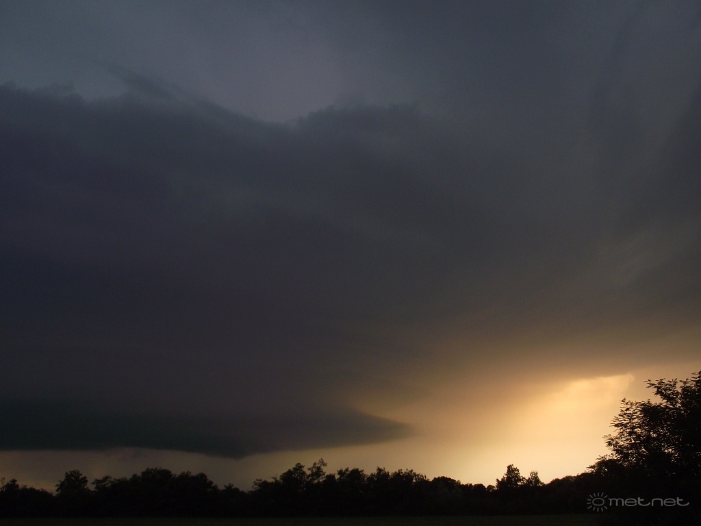 A Sopront elér? és a városon áthaladó szupercella az els? jelentések szerint 3-4 cm-es átmér?j? jegeket produkált. Károkozásról egyel?re nincs információ. Mihályiból fool észlel?társunknak sikerült lencsevégre kapni a fent említett cellát. A képen szépen látható a struktúra: