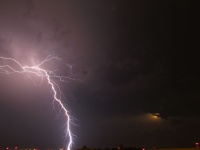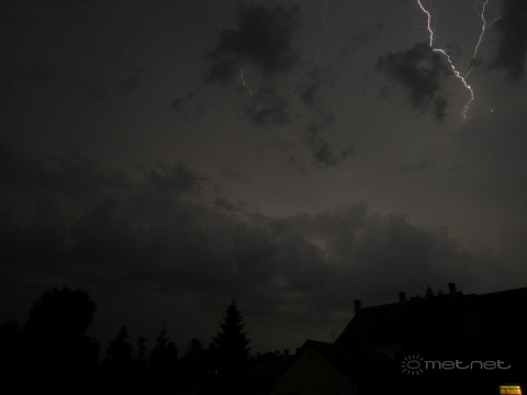 Az éjszakai órákban hol gyengülve, hol er?södve végigvonult a Tiszántúlon az esti órákban délkeleten kialakult zivatarzóna (MKR). Az intenzívebb zivatarokat helyenként kisebb jéges?, illetve viharos széllökések kísérték.A vihar érkezése Debrecenbe (21es fotója), és egy villámfotó Nyíregyházáról (óriásfej fényképe), köszönjük!