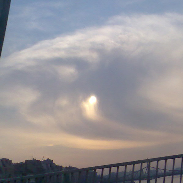sűrűsége folytán a Nap és a Hold körvonalai nem láthatóak.