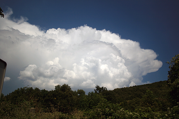 Kopasz zivatarfelhő, a tornyos gomolyfelhő továbbfejlődésével jön létre, a felhő tetején, már elmosódó