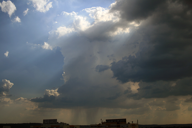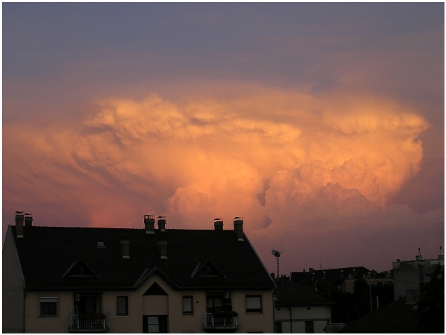 Zivatarfelhő, a tornyos gomolyfelhők továbbfejlődéséből keletkező hatalmas felhőtorony, amelynek felső része