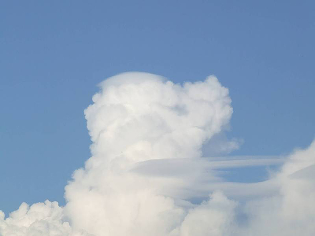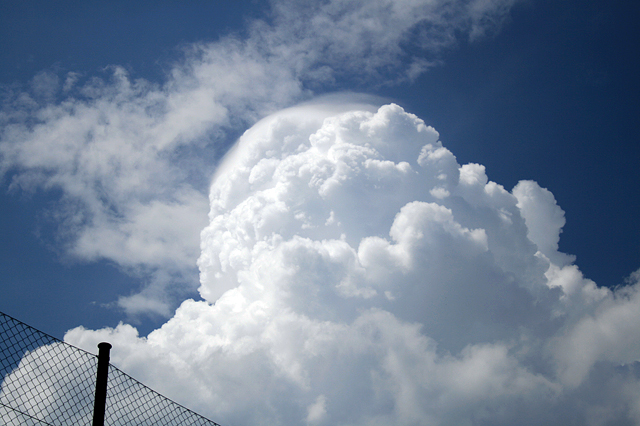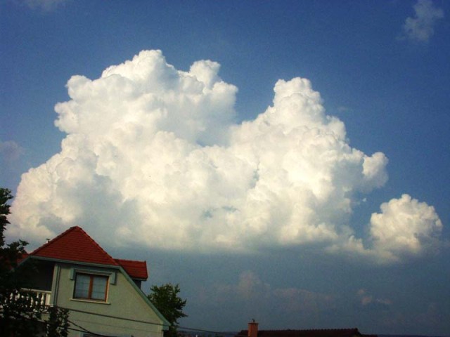 Tornyos gomolyfelhő, az erős gomolyfelhő képződés jellemzője, meglehetősen magasra törő, sötét alappal