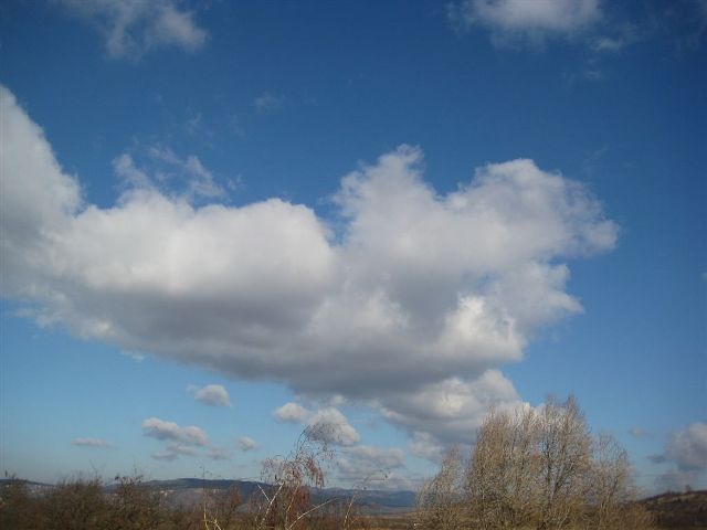 Lapos gomolyfelhő, a gomolyfelhő képződés kezdeti fázisa.