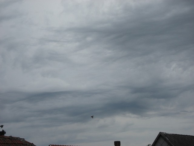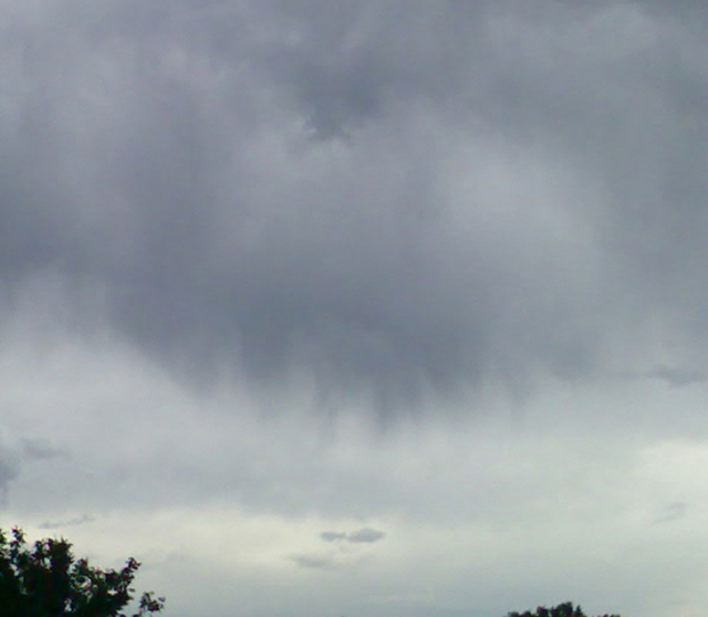 Esőrétegfelhő, mely szürke, sötét, elég sűrű ahhoz, hogy a Napot eltakarja, csapadékhulláskor elmosódott