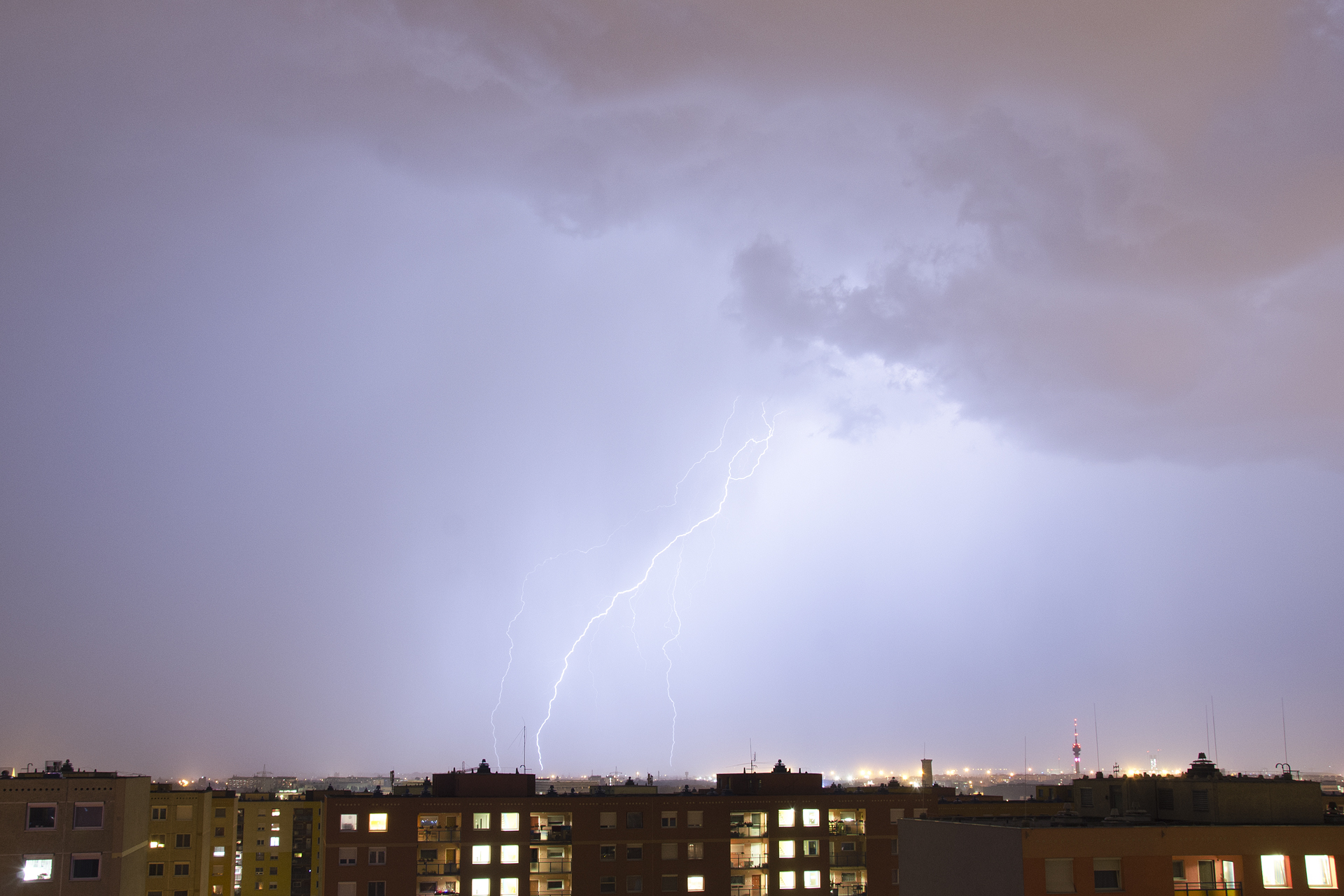 Csapadék itt volt bőven, az első két körből több percig szakadt, és utána is esegetett még hosszan, szerintem 30-40 mm lejöhetett (Lőrinc ~33 mm volt ha jól láttam). Közelebbi lecsapóból itt most nem volt olyan sok, mint a múltkor, fotóilag pedig még mindig a június 10. este viszi a prímet.