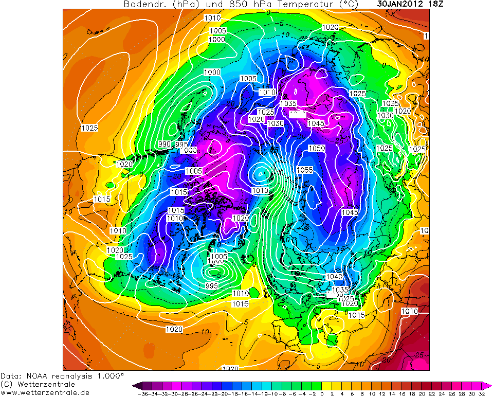 Én csupán azt nem értem, hogy miért érzel kényszert arra, hogy minden helyzetet valamelyik emlékezetes múltbéli űberbrutál téli helyzethez hasonlítgass ráadásul úgy, hogy mégcsak nem is úgy néznek ki. És nem, szerintem egyik képre sem hasonlít, amit beválogattál. Lehet, hogy azon a kis területen az Északi-hemiszférán van egy hasonlító anticiklon, de hemiszféra további 4/5-én véletlenül sem hasonlít sehol sem semmi. Például felhívnám a figyelmed arra, hogy milyen nagy területen magasabb a nyomás a sarkkör környékén, illetve hogy mennyire szépen szét vannak forgácsolódva a hidegmagok több epicentrumra.... ellentétben a legalsó képeddel, ami a jelenlegi előrejelzés.