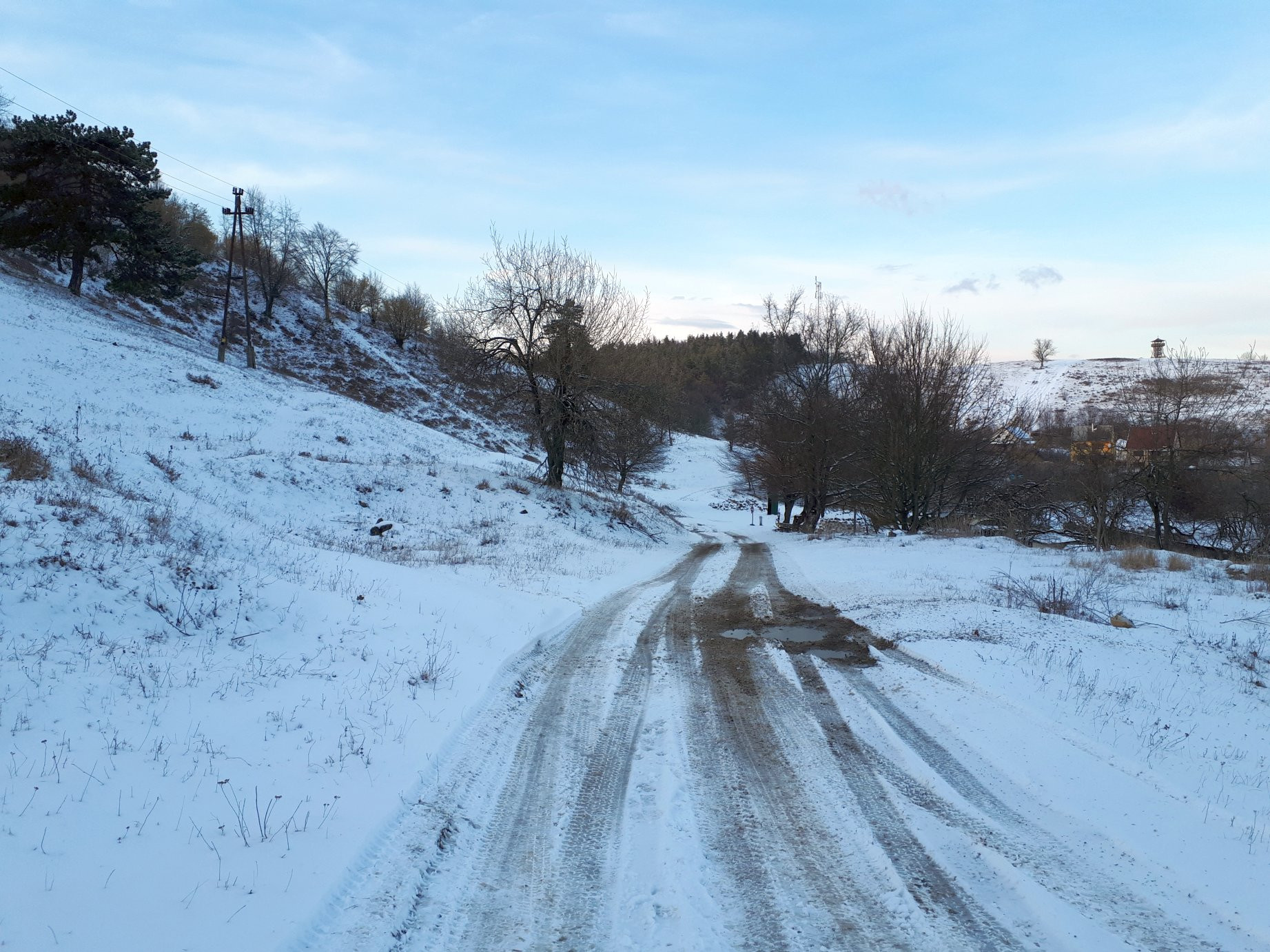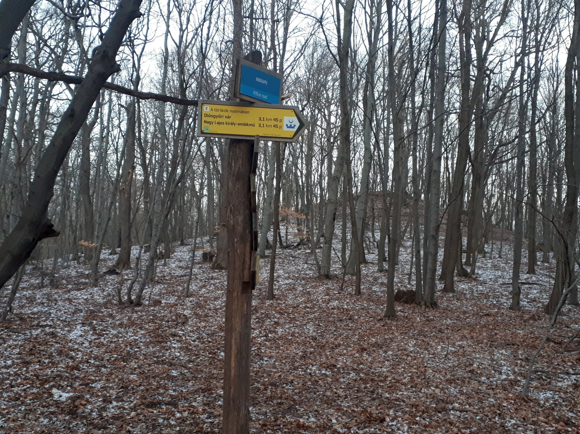 Az Áfonyás nevű, északi oldalon lévő egykori gyümölcsösben azért a fákon is maradt némi hó: Link