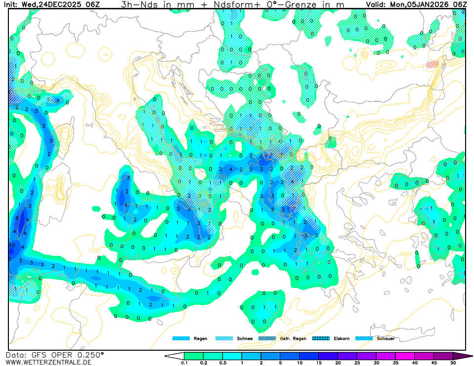 Az ÉÉK-i határvidéken az erősebb inverzió miatt (925 hPa vastagon fagyos lenne) inkább a fagyott esőnek áll a zászló, ill. a csücsökben még a gyenge havazás is palettára kerülhet eleinte.
