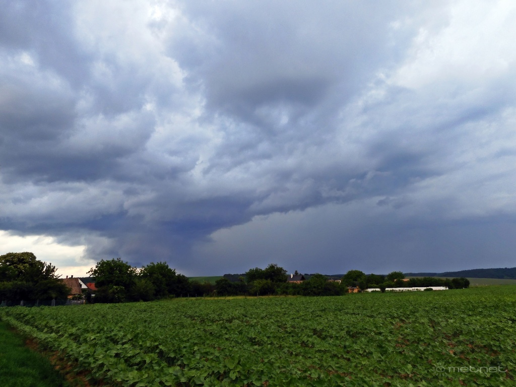 Reggel 7 körül még fülledt meleg volt, majd kelet felől hirtelen beborult,közel 10 fokot esett a hőfok, a felhők pedig egyszerűen mintha lepottyantak volna olyan köd lett. Szép kis láncolat alakult, a felső harmada ahogy látom újra erősödni látszik.