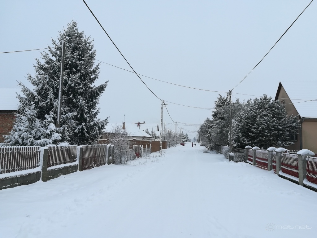A hóréteg vastagsága itt 7-10 cm között van (főleg eleinte a szél hordta a havat). Úgy néz ki, a mai napot átvészeljük olvadás nélkül.
