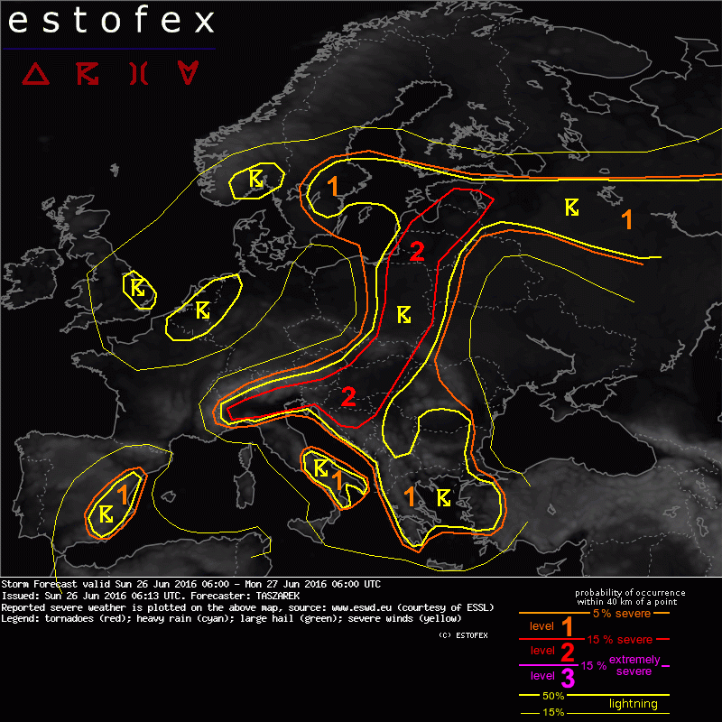 Az éjszakai zivatarból 8 mm esett. Estofex szép lett, 2-es az ország nagy részére, legfõképp a lassúmozgású cellák okozta villámáradások és a nagyméretú jégre adták ki.
