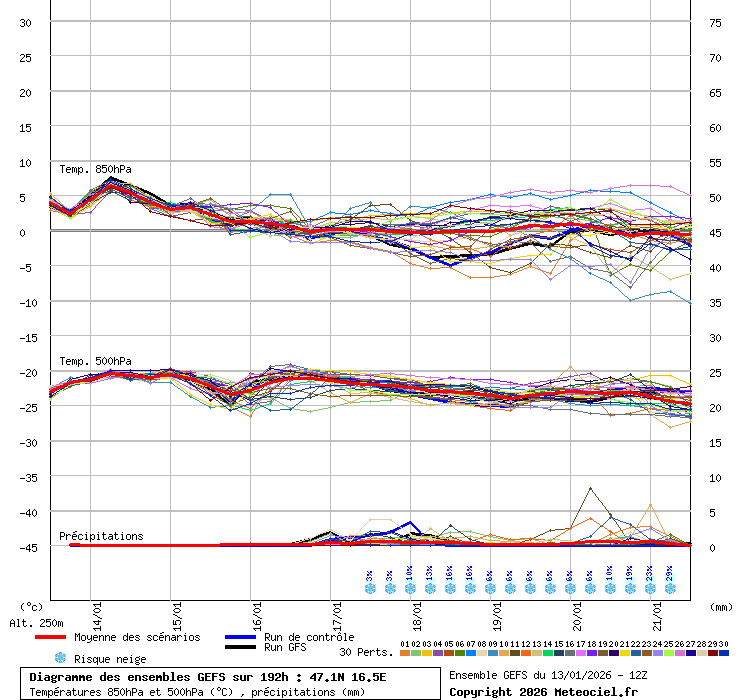 Érdekes, a friss modellek alapján szinte semmi változás nem történt ide. A friss GFS fáklya stabil, továbbra is 5 mm körül fut a csapadékátlag maximuma, és csak két tag tér el tõle érdemlegesen lefelé. Link A frissulõ ECMWF sem lett rosszabb, mint a 00Z-s futás, gyakorlatilag ugyanannyi csapadékot vár, és esélyt ad rá, hogy már akár péntek reggel havas tájra ébredhetnénk (ugyan ezt adja a WZ-ERF is). Hasonló csapadékmennyiségeket vár a GEM és a JMA is, de még az UKMO is elég jó ide.