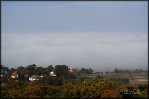 Olyan szósz volt itt reggel, hogy az ember az orráig nem látott. Lt 50 méter, 8 órakor 100m, most meg olyan 300 méter körüli. A nap látszik!