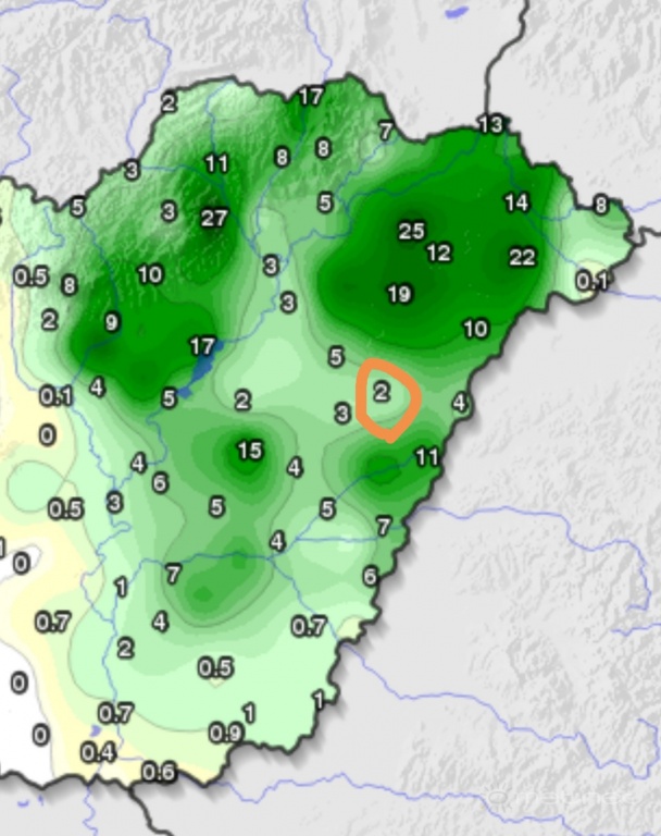 Modellek szerint... Kb 2 hete nézem minden nap a következő 1 hétre 40 mm-t mutat minimum, de ennek ötöde-tizede realizálódik.
