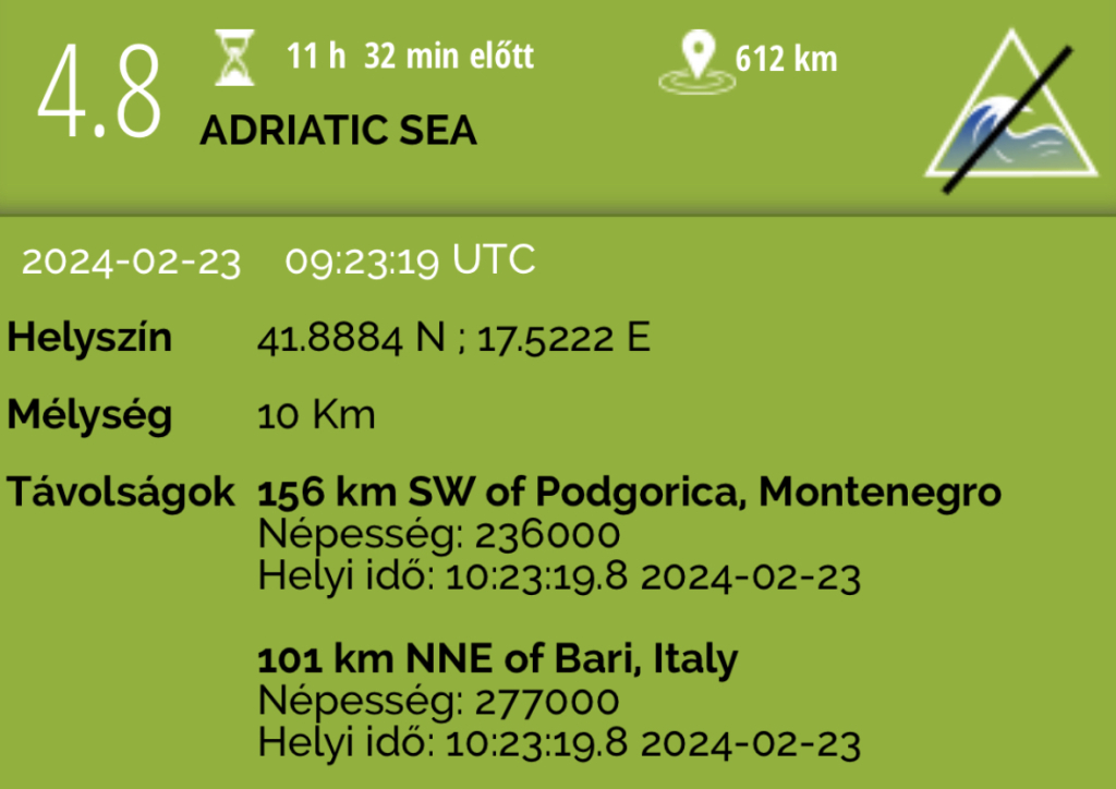 A földrengés oldalát ezután néztem meg és láttam, hogy bejelzett. Közben most nézem, hogy további 3 rengést is jelez az oldal a mai napon, de ekkor nem voltam itthon. Lehet nem is lehetett érezni.