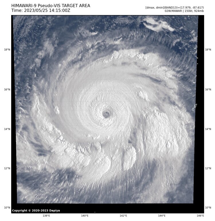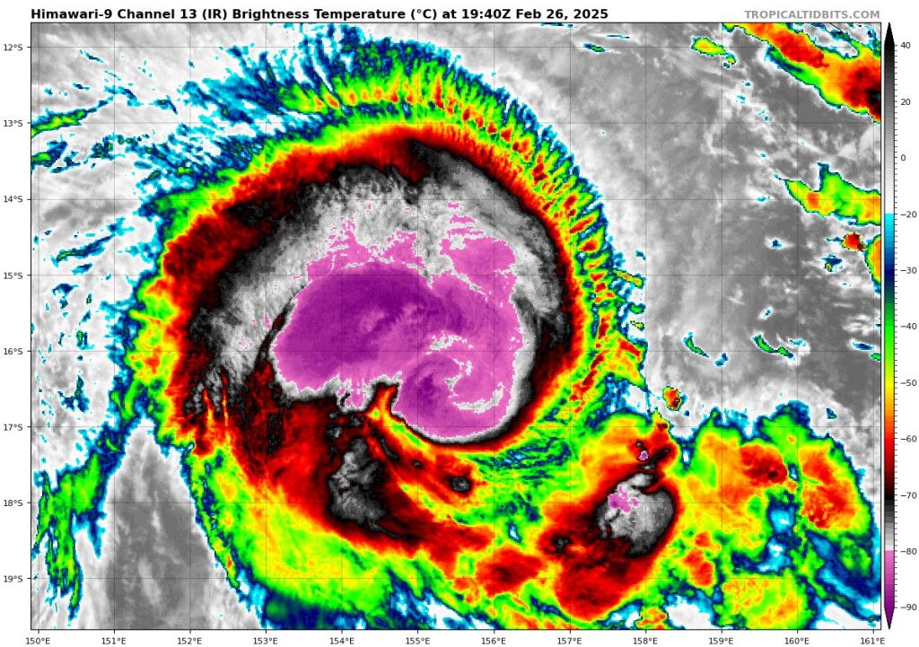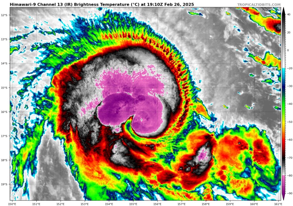 160 kt (295 km/h) / 892 hPa lesz valószínűleg a csúcsintenzitás.