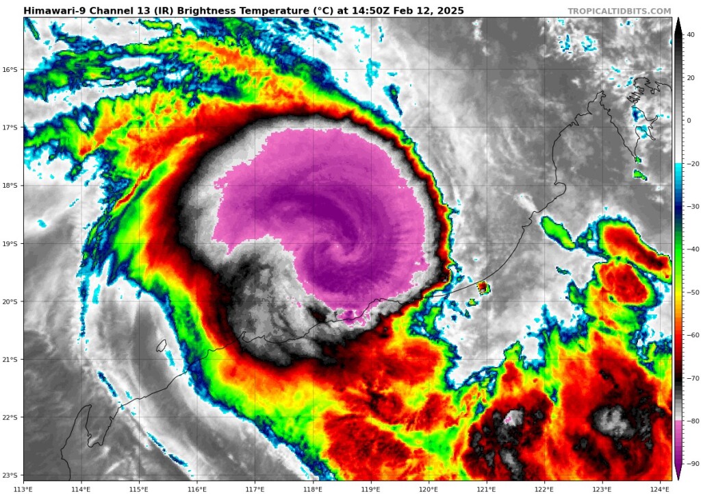 2-3 órája ért partot Vietnámban. Igaz, ott már “csak” 169 km/h-t mértek, de a kb fél millió lakosú Ha Tinh-t átrendezte ez is.