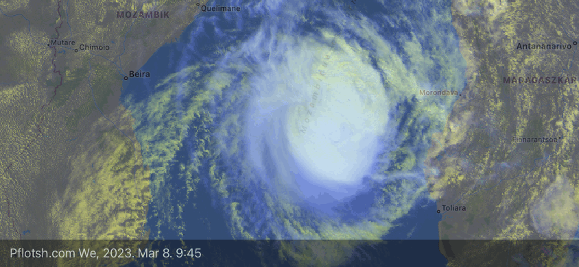 Ma se nem kicsi, viszont a magja már kezd szervezetlenebb lenni, az északi oldalán pedig alakul a pre-melegfronti felhőpajzs.