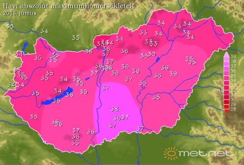 A legmagasabb maximumot holtversenyben az Alföld és a fõváros hozta, Soltvadkerten és Budapesten egyaránt 37,6 °C-ot mért Petrol illetve Karcsi 2005 nicknevû észlelõnk. A fõváros 20-án, az alföldi település pedig 19-én produkálta a hónap legmagasabb értékét.