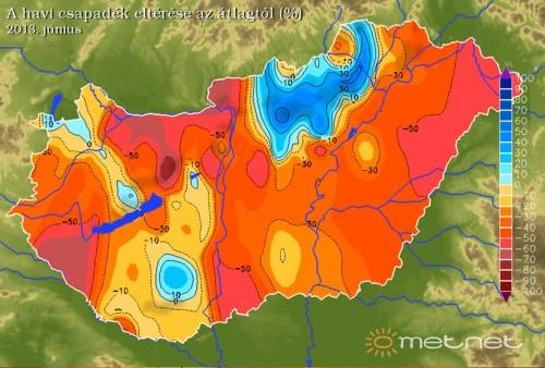 A meteorológiai nyár elsõ hónapja most sem okozott csalódást, az elsõ dekád csapadékos, hûvös idõvel telt el, a hónap közepén forró, nyári idõ volt jellemzõ kemény zivatarokkal, majd június utolsó napjai ismét az õsziesebb idõ jegyében teltek. Egy beragadó ciklon következtében a Dunán rekord magasságú árhullám vonult le.