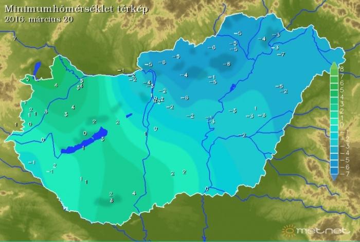 Minimum-hõmérsékleti térkép (március 20.)