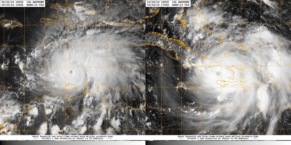 Matthew közel 5-ös erõsségûként Columbiától északra szeptember 30-án, valamint Haiti és Kuba között október 4-én