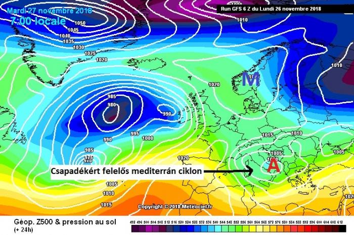 A csapadékos időszak nem ér véget, ugyanis egy a Földközi-tenger térségében kialakuló mediterrán ciklon hatására holnap is folytatódik az országszerte csapadékos idő. A fagyos levegő érkezésének köszönhetően az éjszakai órákban egyre nagyobb területen kezdődik halmazállapot váltás.