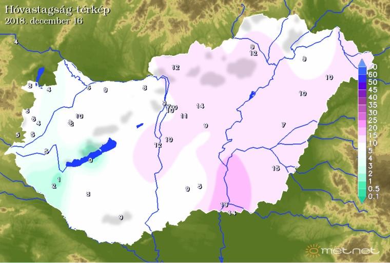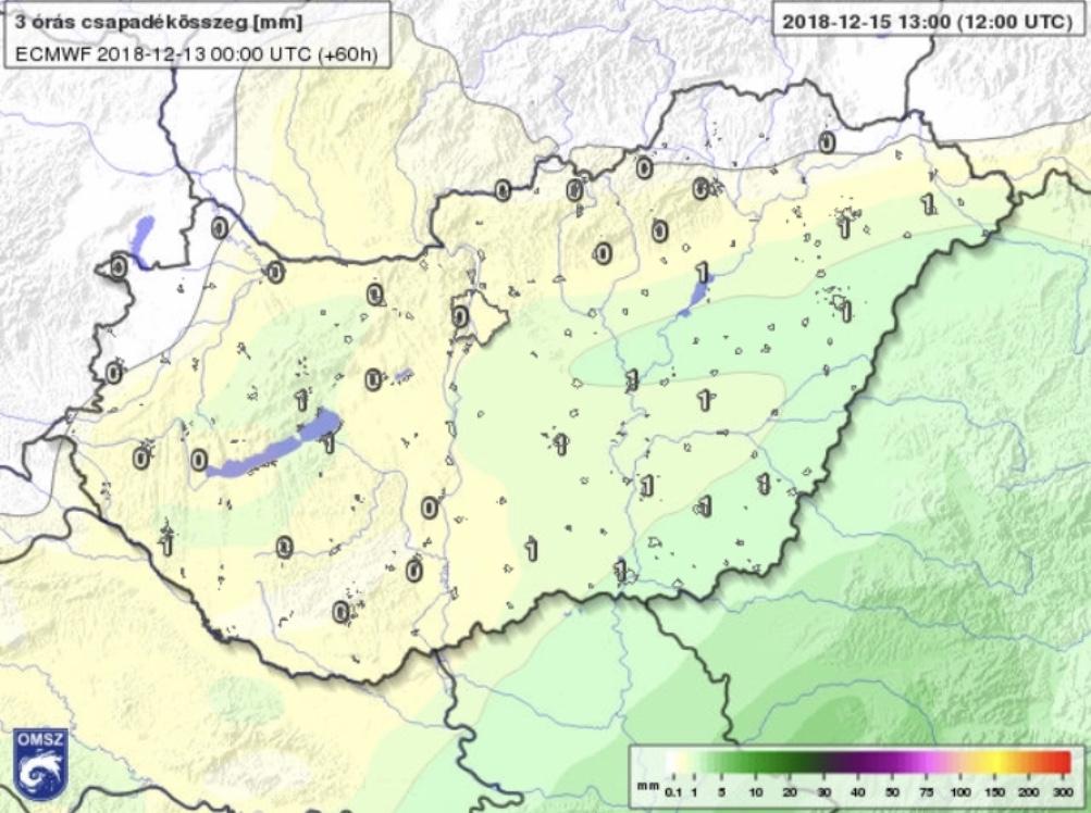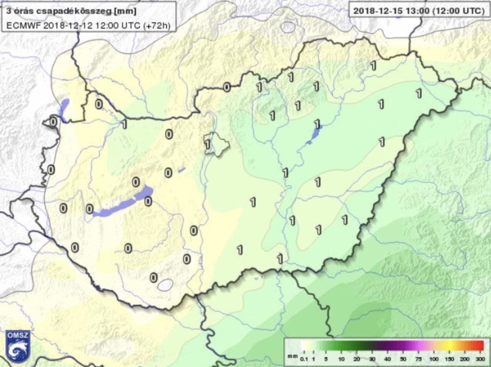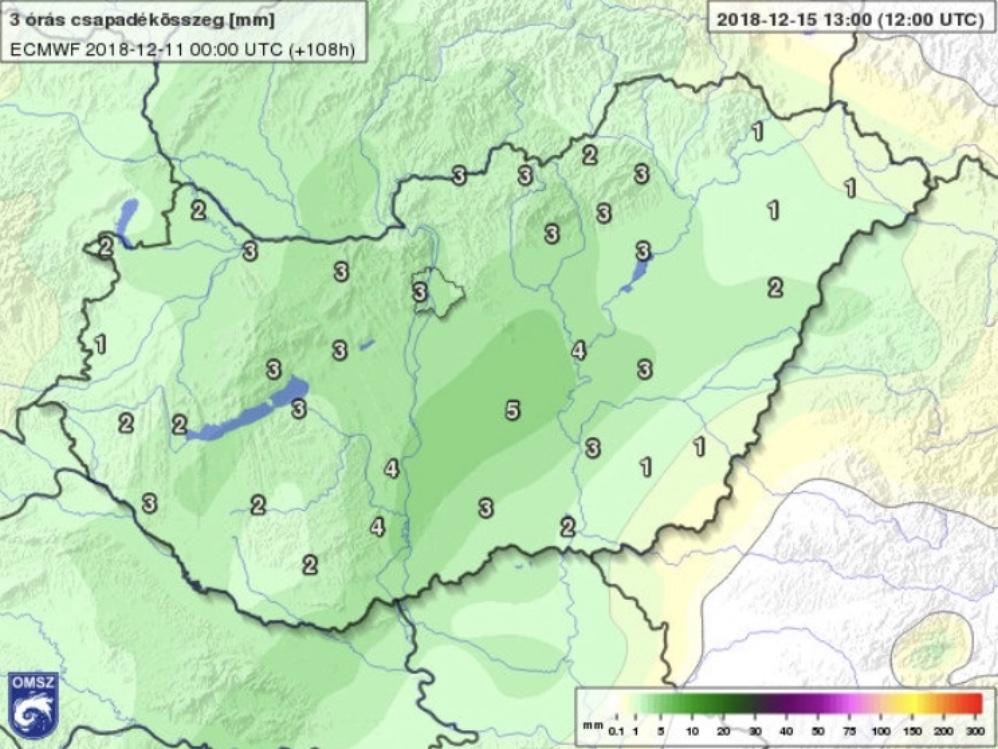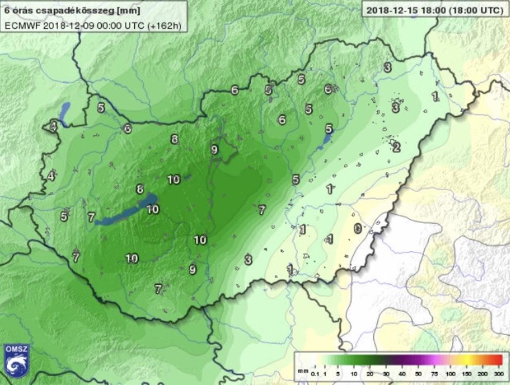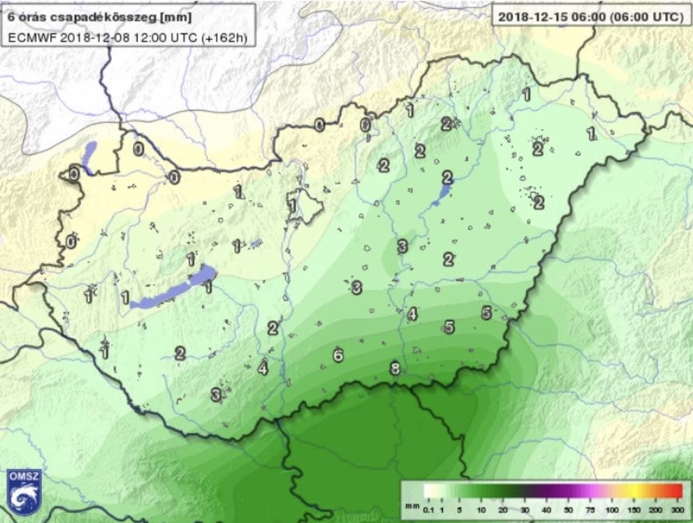 December 13-tól pedig már egyre biztosabban tartotta a "véleményét" a modell, miszerint a legtöbb csapadékot délkelet kapja, a legkevesebbet pedig az ország északnyugati csücske (5.ábra).