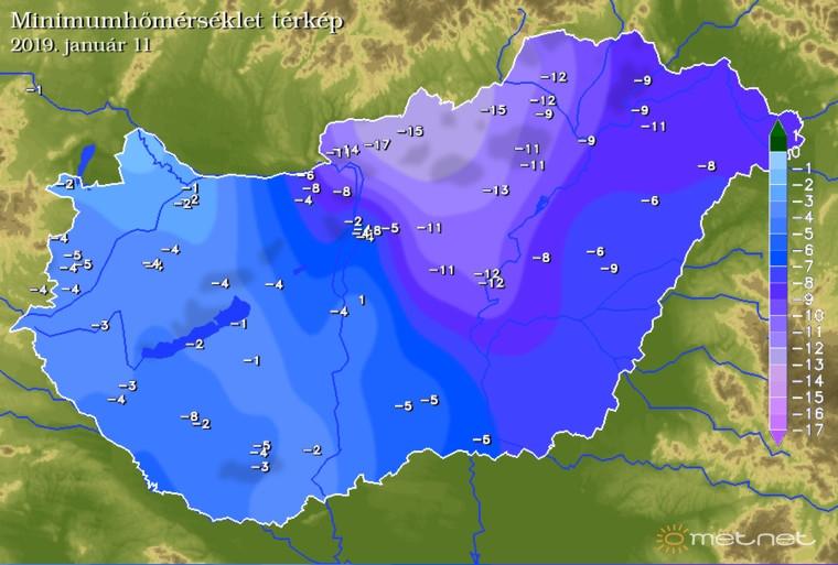 A havazások után a derűs égbolt felett főként január 10-én északon és keleten komolyabb fagyok is kialakultak a hajnali órákban, a szélcsendes völgyekben -17 fok köré csökkent a hőmérséklet: