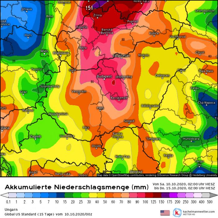 Összességében elmondható, hogy szerdáig az ország nagy részén csapadékos idő várható, talán csak a Dunántúl nyugati része lehet kevésbé csapadékos hétfőn délutántól.