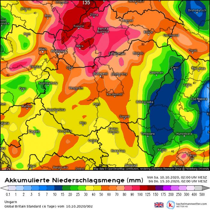 A GFS és az UKMO modellek a középső országrészt favorizálják és a 80mm-t meghaladó csapadékot se zárják ki.