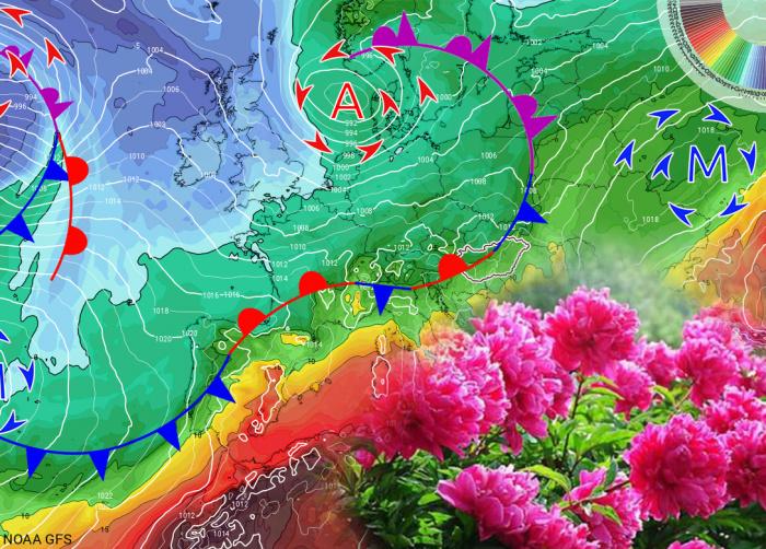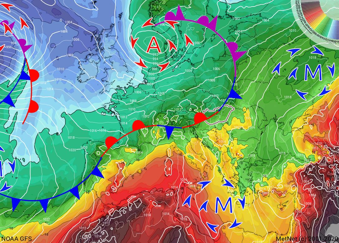 A kontinens időjárását a hétvégén a Brit-szigetek és Skandinávia felett elhaladó ciklonok és a hozzájuk tartozó hullámzó frontrendszer határozza meg. A front mögött Észak- és Nyugat-Európában hűvös, csapadékos, míg Kelet- és Dél-Európában meleg és száraz az idő. Hazánk ezen két légtömeg ütköző zónájában helyezkedik majd el.