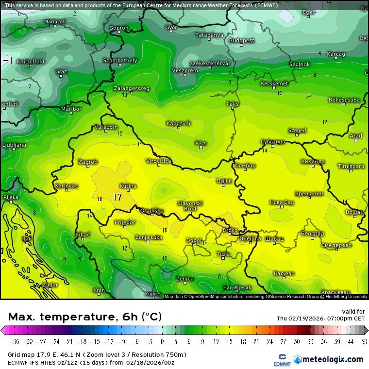 Becsült hőmérsékleti maximumok délen (ECMWF modell)