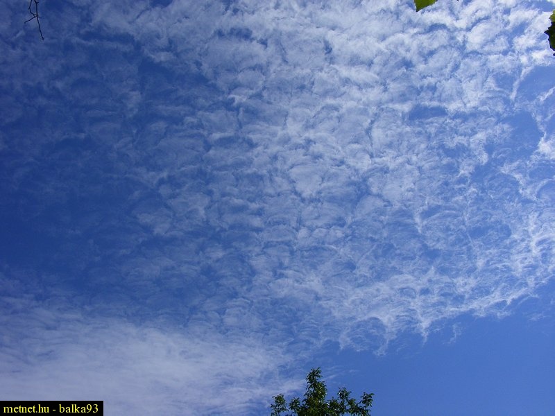 2010-01-12 21:47:40 - Kosakiss Igy néz ki egy okkludált, elöregedõ, kiszáradóban levõ, mind jobban disszipálódó (szétesõ) ciklon felhõzete: az AC stratiformis translucidus lacunosus mozaikszerû leplét alkotó felhõelemek nagyon vékony, töredezett lemezek, amelyek itt-ott kisebb, rövid mammákat eresztenek lefelé. Gratulálok a felvételhez!