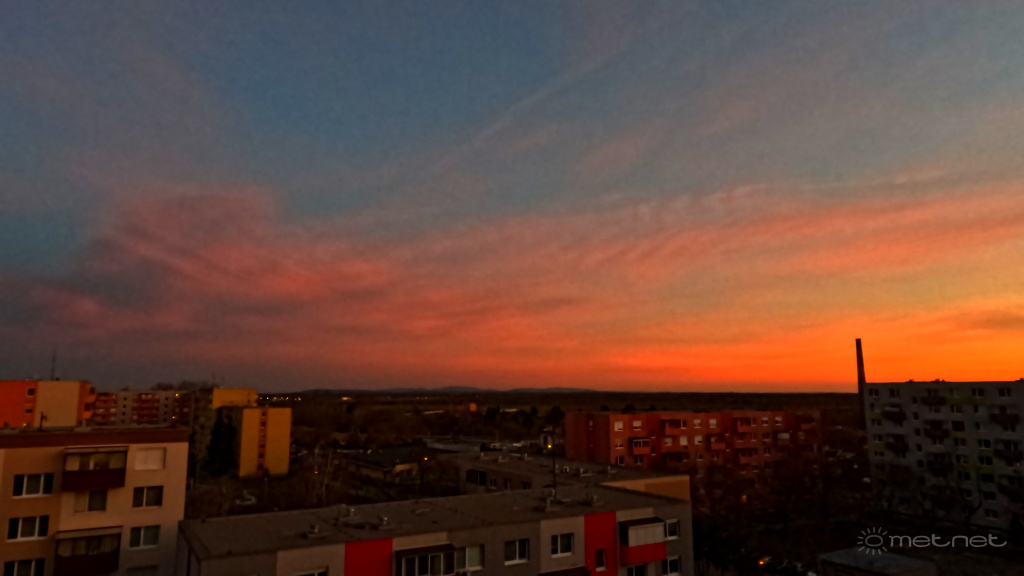| Leírás: Egész eget megvilágította a naplemente, annyira erős volt a lemenő nap vörösses narancsoy fénye. | |