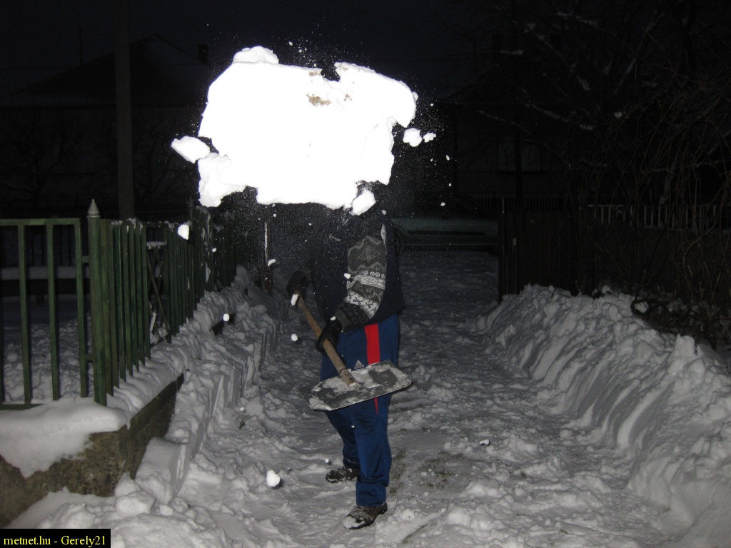 | Leírás: Hólapátolás közben | |
