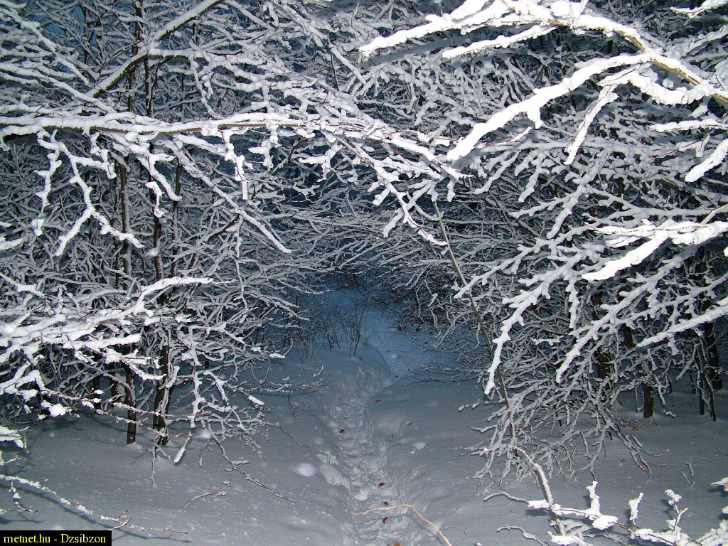 | Leírás: Téli, zúzmarás erdei ösvény. | |
