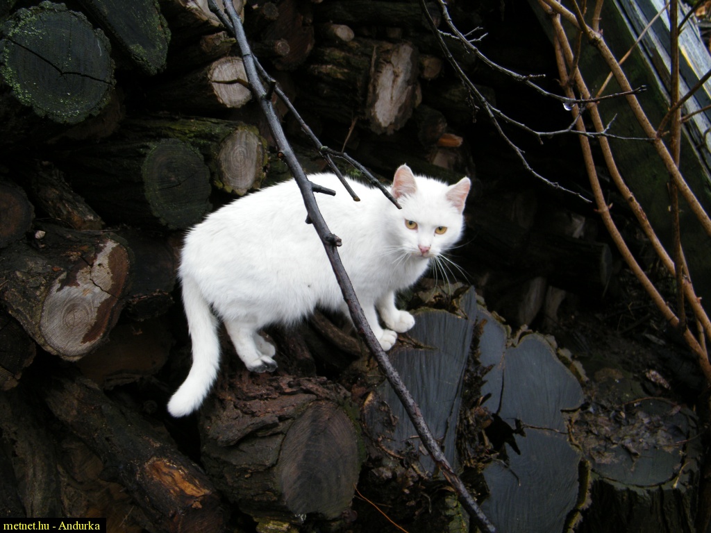 2010-02-24 14:54:55 - Kosakiss Lili nagyon szép hófehér cica. Látom, szereti a farakást. A mieink naphosszat föl-leugrándoznak rajta.