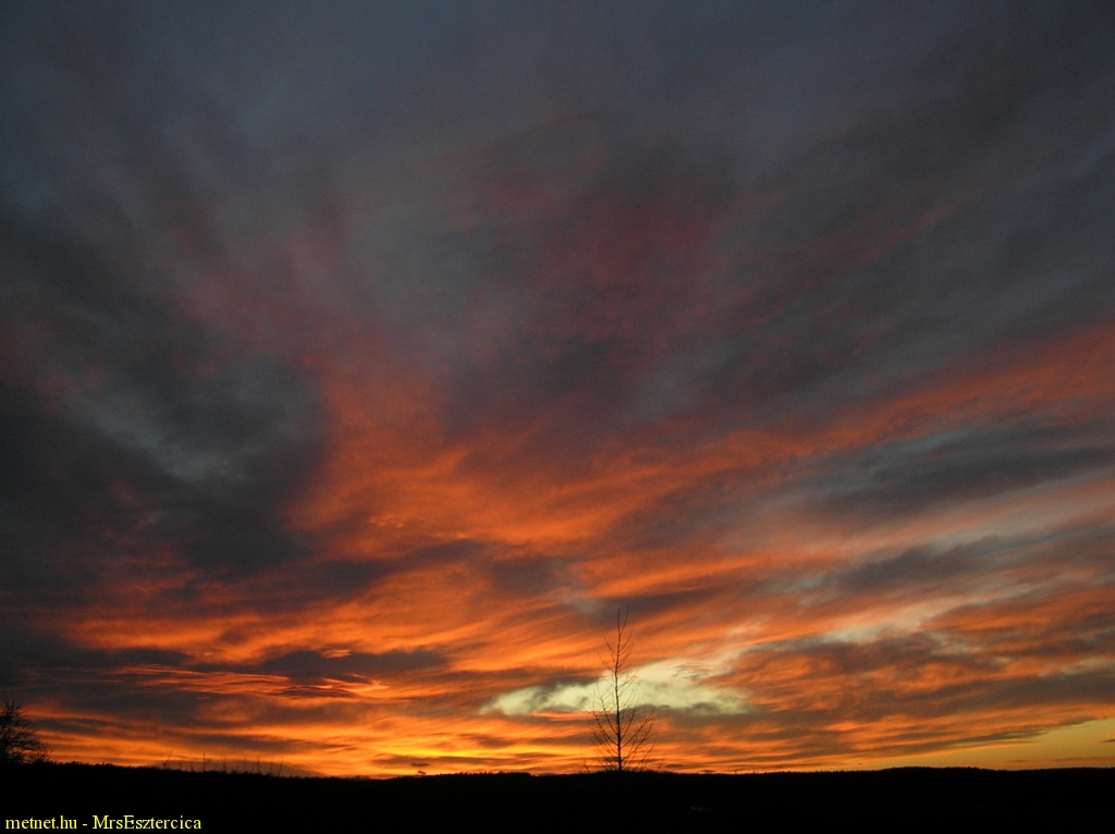 Leírás: Lángokban izzó, szélseperte felhõk búcsúztatják februárt az õrségi dombok felett.