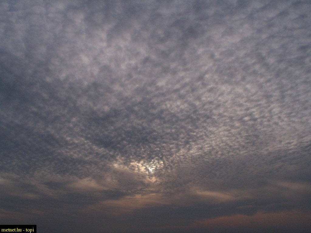 2010-03-21 14:28:09 - Kosakiss Az 5 foknál kisebb párnácskákból álló felhõmozaik neve Altocumulus stratiformis translucidus lacunosus, fölötte (a képen alul) Cirrostratus nebulosus látszik. Nagyon jó felvétel!