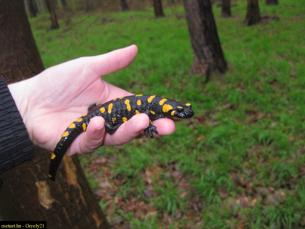 | Leírás: Foltos szalamandra ( Salamandra salamandra) Természetvédelmi érték: 10000 Ft |