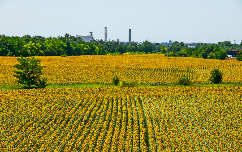 | Leírás: Napraforgóföld egy felüljáróról | |