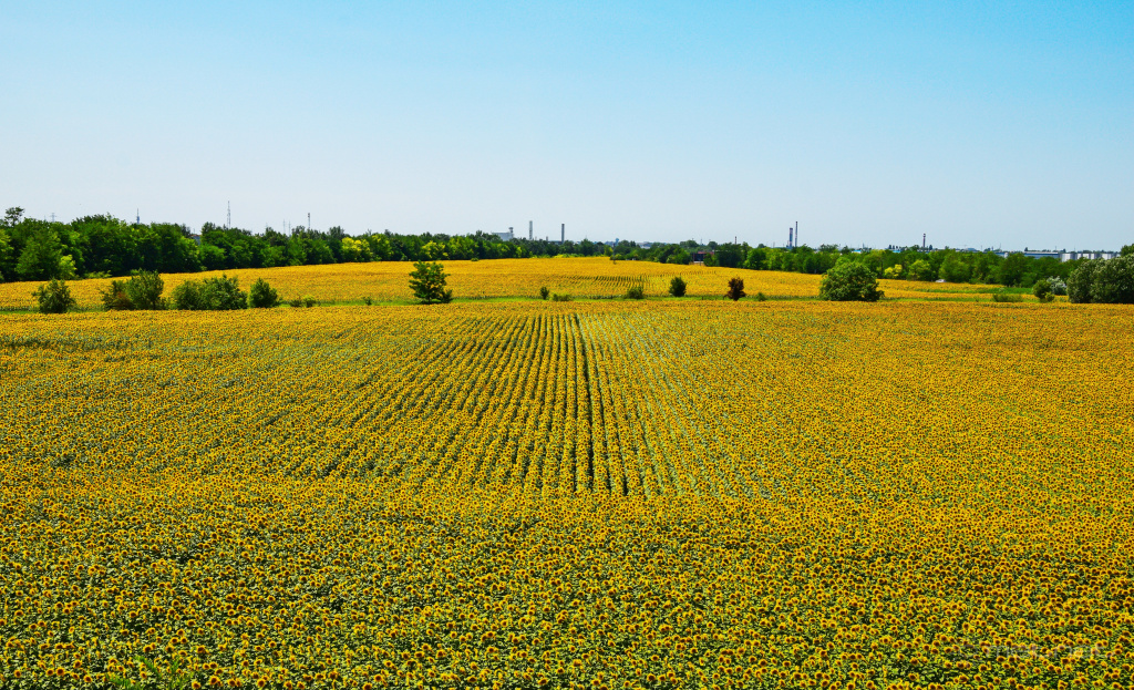 | Leírás: Napraforgóföld egy felüljáróról | |