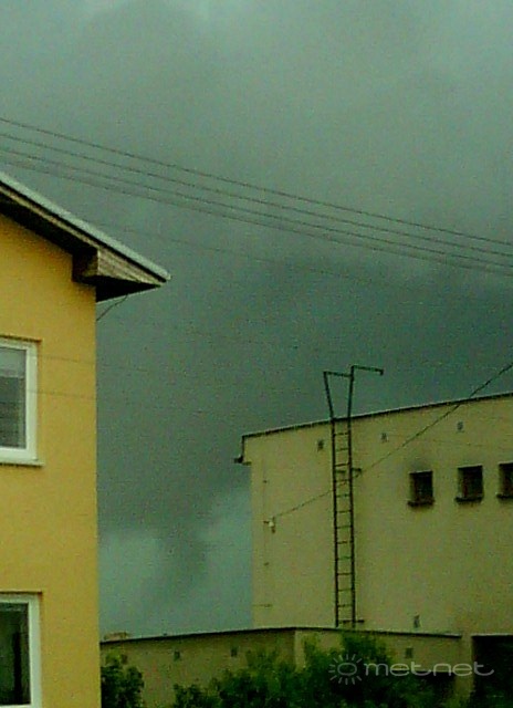 | Leírás: A peremfelhõ alatt kb. 20 mp-re elõbukkant a két ház közül ez a tubagyanús képzõdmény, amely gyanúsan kavargott/forgott. De nem kizárt, hogy csak egy becsapós fractus. :) | |